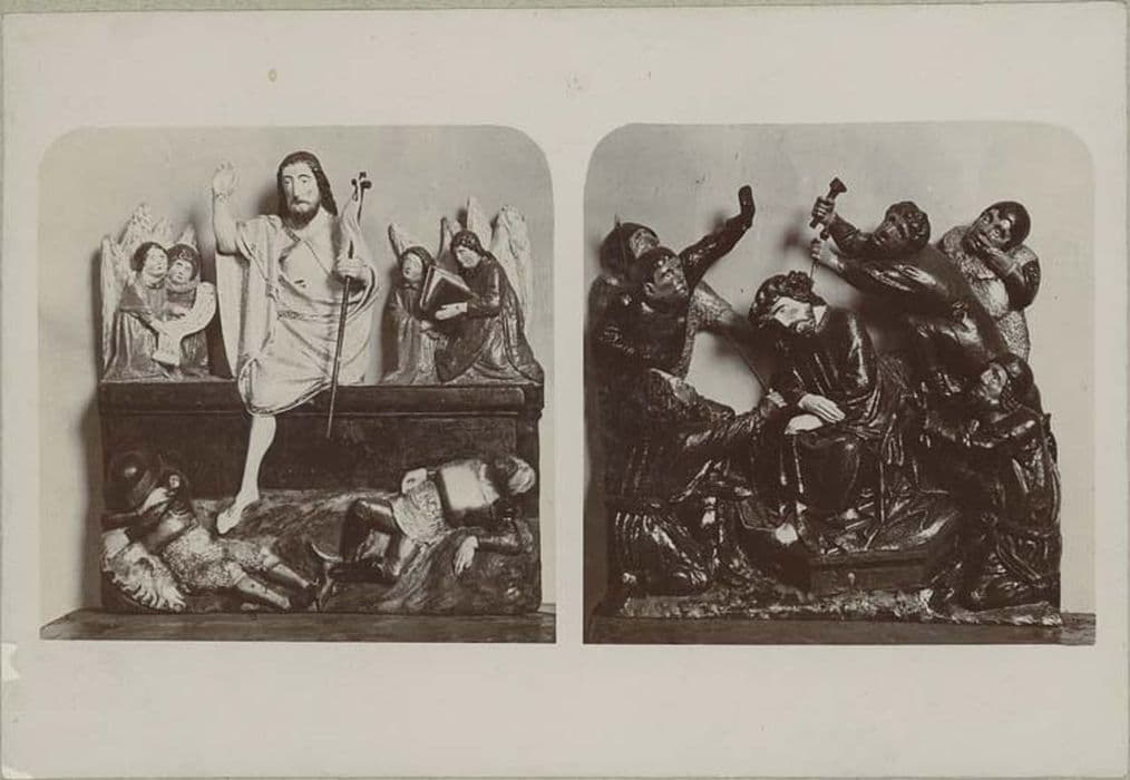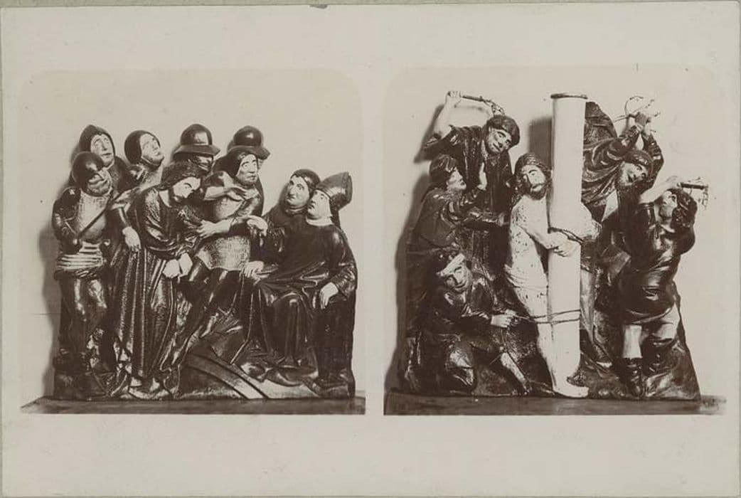 Les scènes de la Passion sont sculptées en haut-relief dans des blocs de noyer.