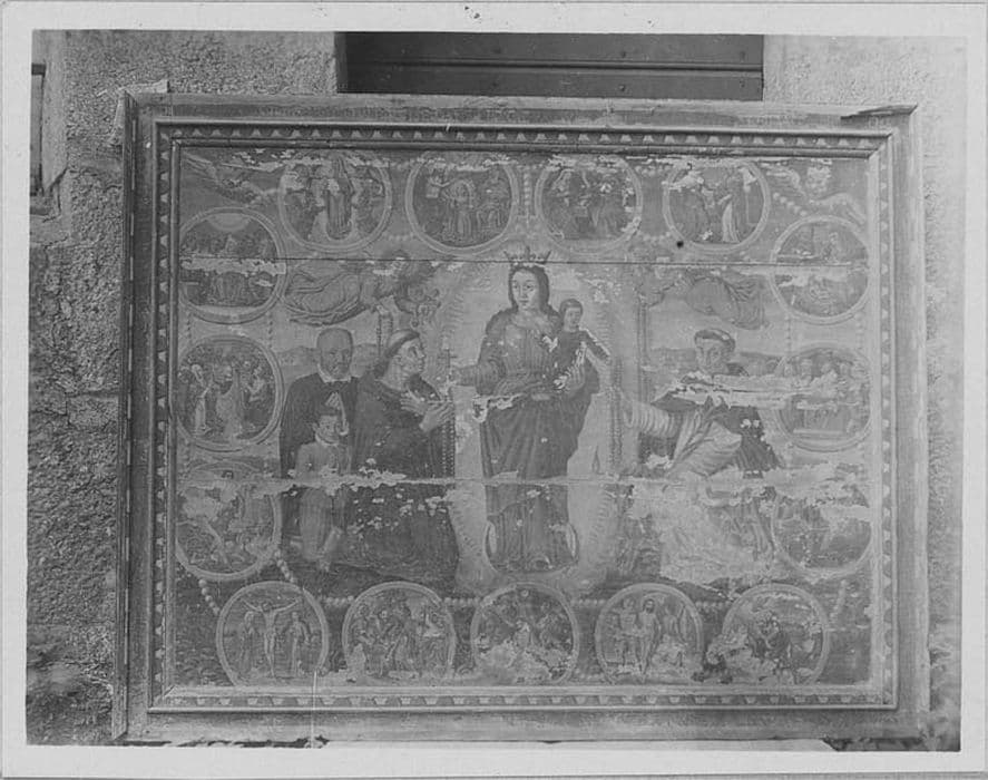 POP | Plateforme ouverte du patrimoinetableau, cadre : La Vierge du rosaire avec saint Dominique, saint Bernard, le donateur et son fils