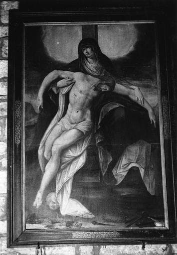 Ce tableau représente le Christ dans les bras de la Vierge au pied de la croix. Le soleil couchant place cette scène dans le temps liturgique de la déposition. La Vierge, seule ici, tient le Christ dans ses bras reposant sur un suaire la tête inclinée. Cette représentation est conforme à la tradition picturale italo-flamande du 16e siècle.