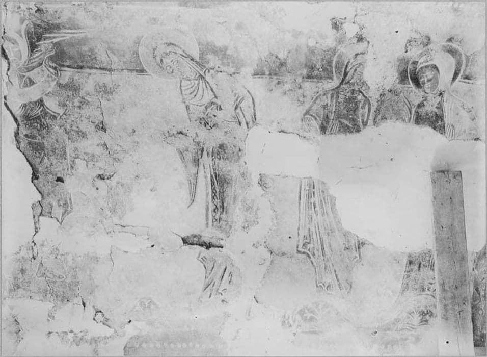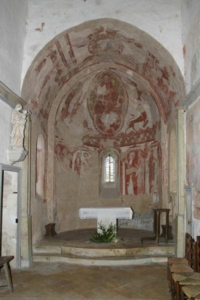 peintures monumentales du choeur : Christ en majesté, agneau Nimbe, l'Annonciation, la Visitation, la Nativité, saints et apôtres