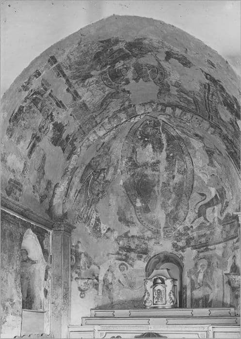 POP | Plateforme ouverte du patrimoinepeintures monumentales du choeur : Christ en majesté, agneau Nimbe, l'Annonciation, la Visitation, la Nativité, saints et apôtres