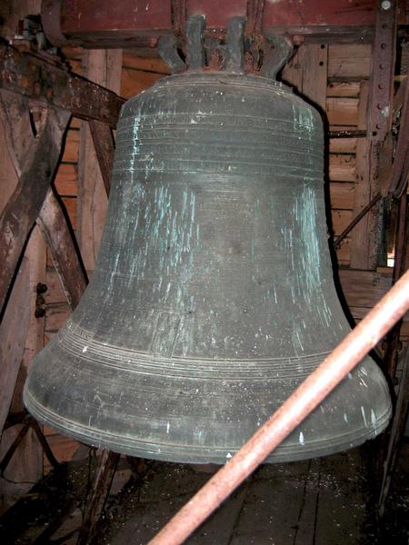 Inscription avec date : L'an mil sept cent cinquante sept, j'ai été bénite par M. Claude-Nicolas de la Morlière, ... prieur curé et nommée Marie6angélique-Catherine par Messire Louis-Alexandre Anfran, chevalier, conseiller au Parlement, seigneur de Chone et par Madame Marie Angélique Catherine Darlus épouse de Denis François Anfran d'Alleray procureur général du roy en son grand coneil. Pierre François Morée et Gabriel Callu, fabriciers.