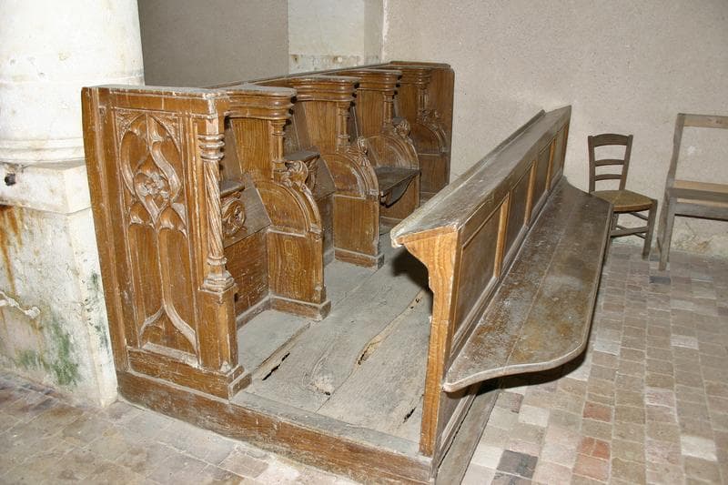 Ces huit stalles sont en deux parties, quatre sont à droite et quatre sont à gauche du passage central.