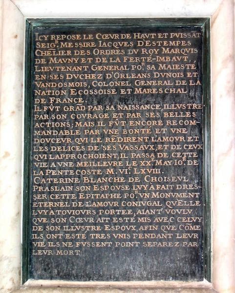 plaque funéraire de Jacques d'Etampes, marquis de la Ferté-Imbault