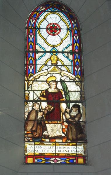 verrière : donateur agenouillé devant saint Etienne