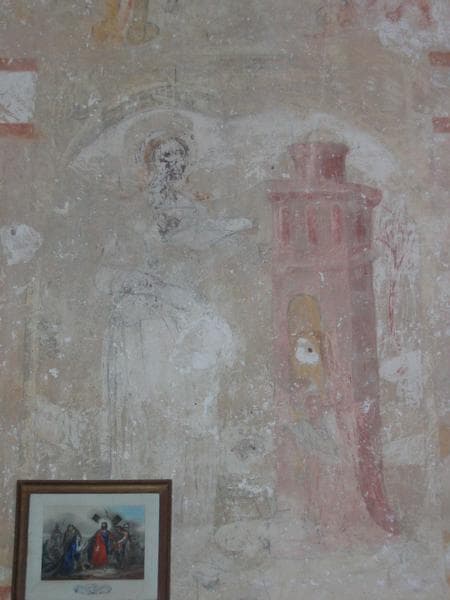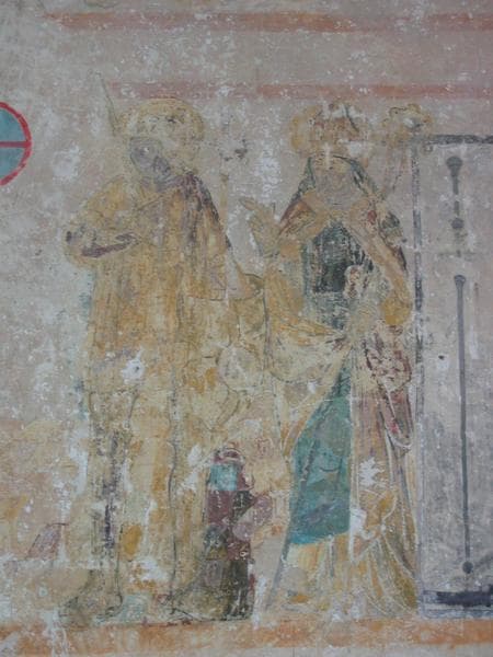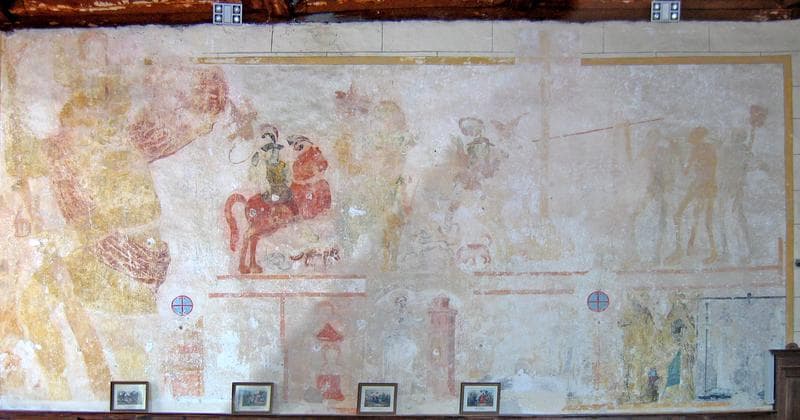 peintures monumentales de la nef : dit des trois morts et des trois vifs (le), saint Christophe, scène de la vie de saint Eloi
