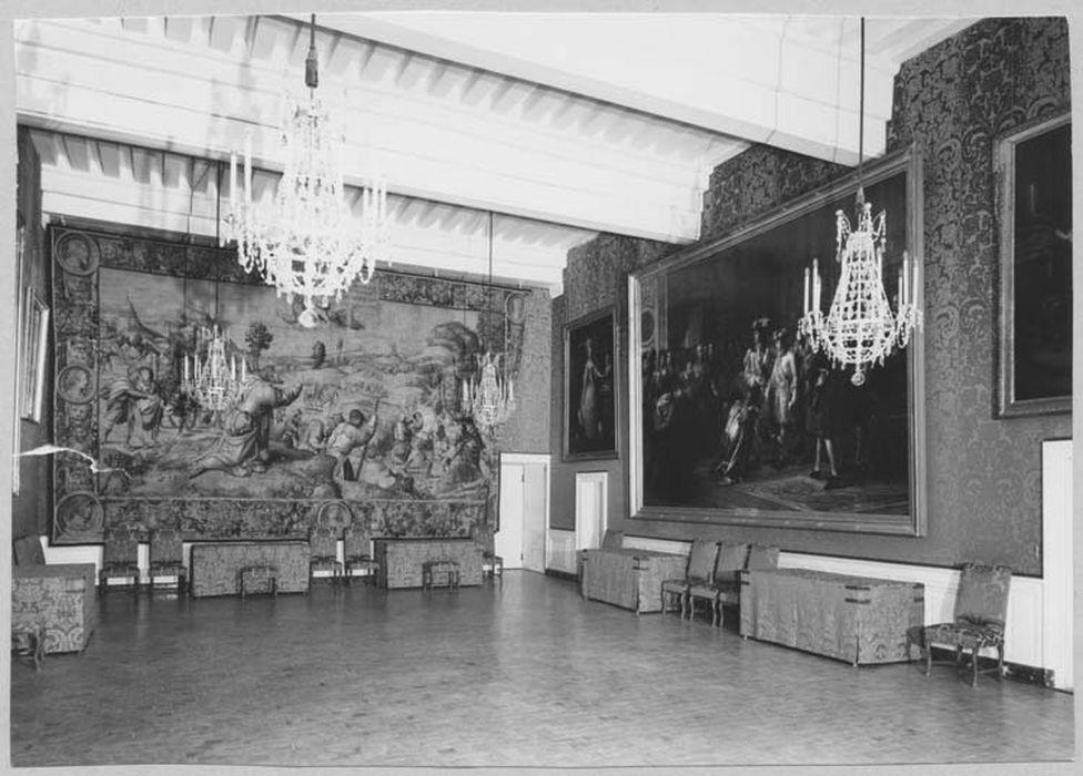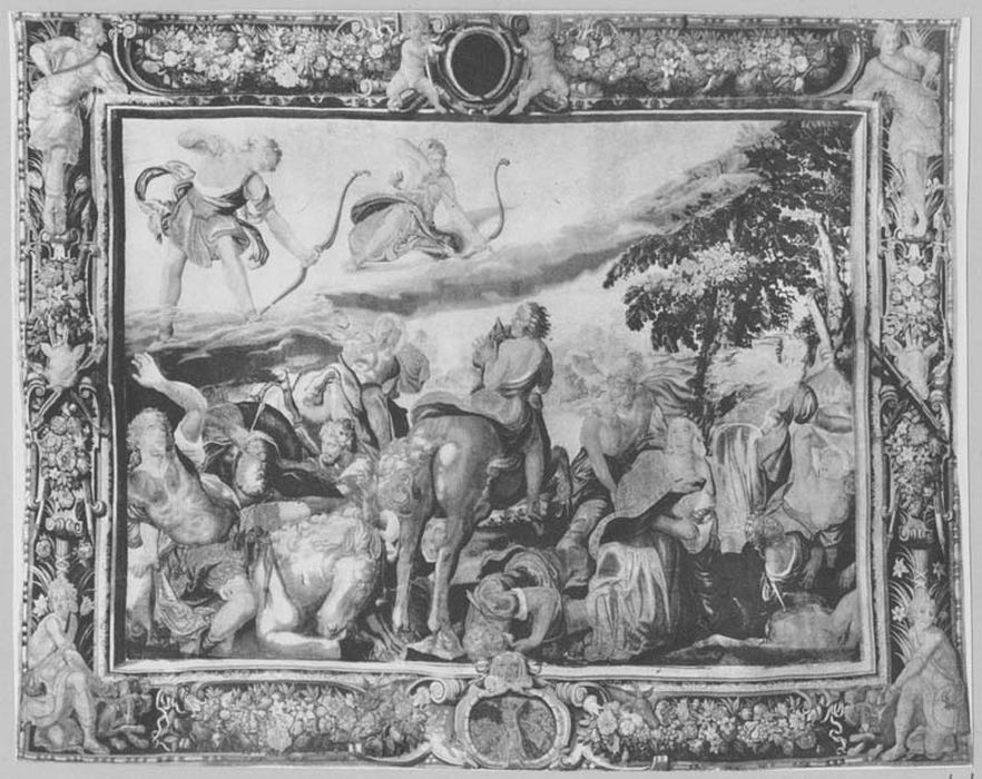 Ancienne collection La Forest-Divoune (acquisition le 26 juillet 1938). Acquises avec le concours de la CNMH. Cette suite de tentures est citée dans les inventaires (1627) des ateliers de Paris de François de La Planche et des séries perdues existaient aussi dans le mobilier de Versailles jusqu'en 1789 et chez celui de Cinq-Mars et de l'abbé d'Effiat en 1643. Mais cette tenture était restée inconnue de Fenaille et provient avec certitude du château d'Uriage (Isère) dont elle ornait les salons. Les cartons seraient l'Oeuvre du peintre Laurent Guyot qui vivait au 17e siècle et se serait inspiré de modèles du 16e siècle.