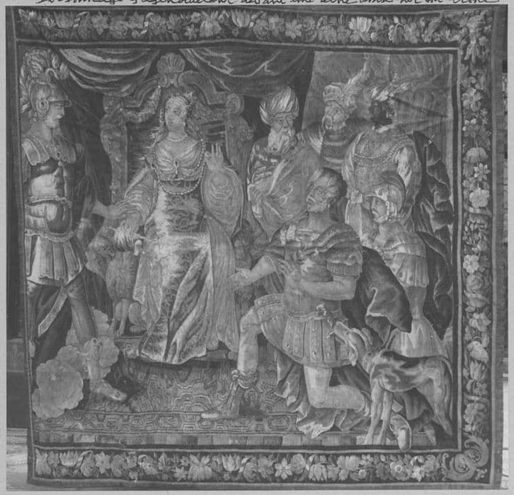 POP | Plateforme ouverte du patrimoinepièce murale : personnage s'agenouillant devant une reine assise sur son trône