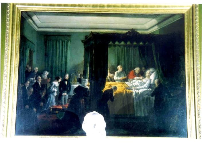 Charles X recevant l'extrême-onction à Goritz en 1836, entouré de sa famille et de ses fidèles serviteurs.