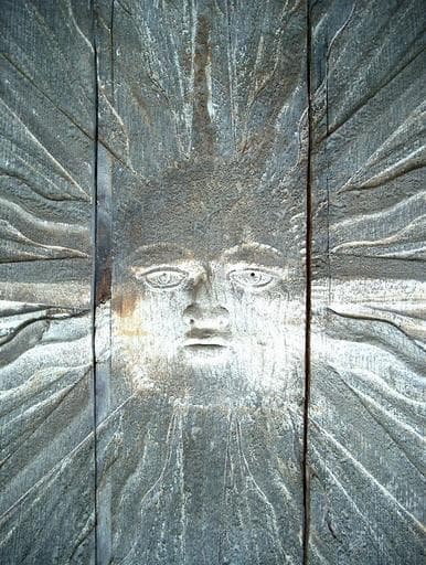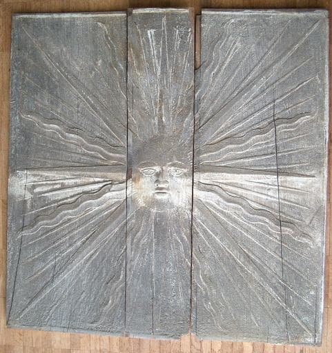 lambris de revêtement : panneau sculpté d'un soleil