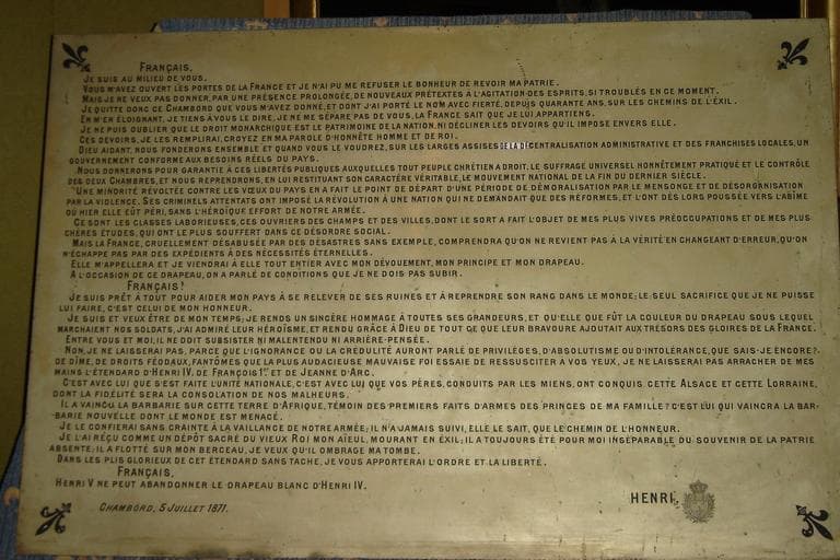 Texte du manifeste du comte de Chambord, daté du 5 juillet 1871.
