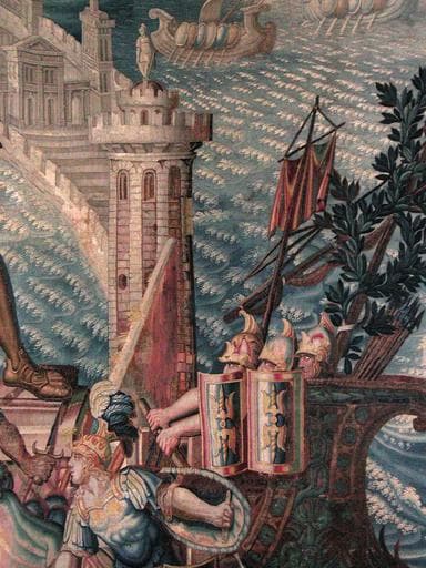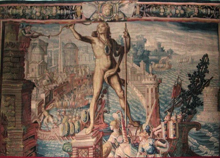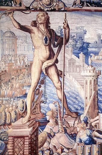 tenture de l'Histoire d'Artémise : le Colosse de Rhodes