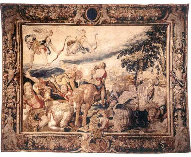 tenture de l'Histoire de Diane (tenture I) : Diane et Apollon tuent les enfants de Niobé