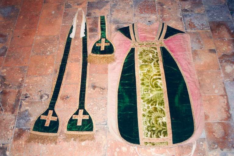 chasuble ; étole de clerc ; manipule ; voile de calice