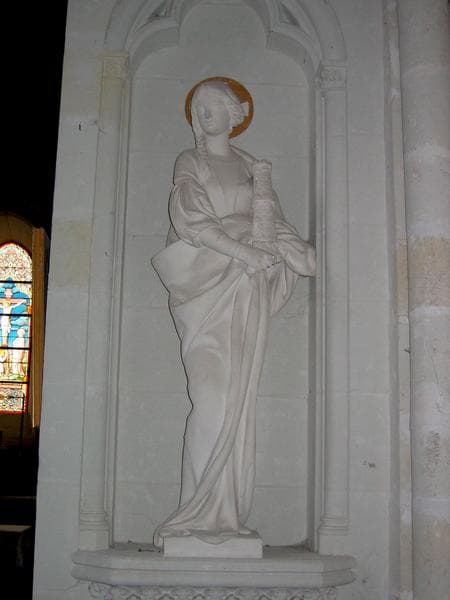 quatre statues: Sainte Barbe, saint Jean-Baptiste, saint Hilaire et sainte Germaine de Pibrac