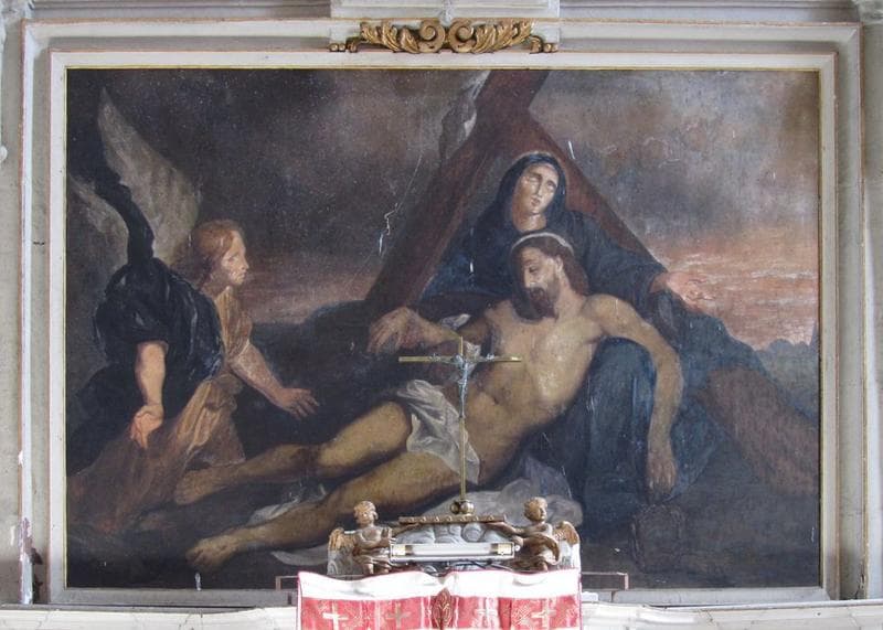 POP | Plateforme ouverte du patrimoineretable du maître-autel avec tableau : Déposition de croix et statue : Saint Michel terrassant le dragon