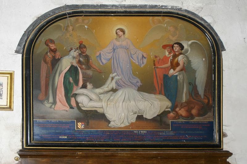 POP | Plateforme ouverte du patrimoinetableau ex-voto : Madame de Froberville, saint Eugène, sainte Amélie, saint Maurice, saint Charles et saint Michel Archange