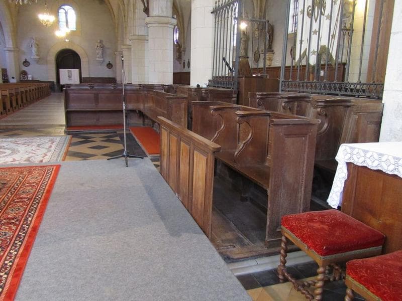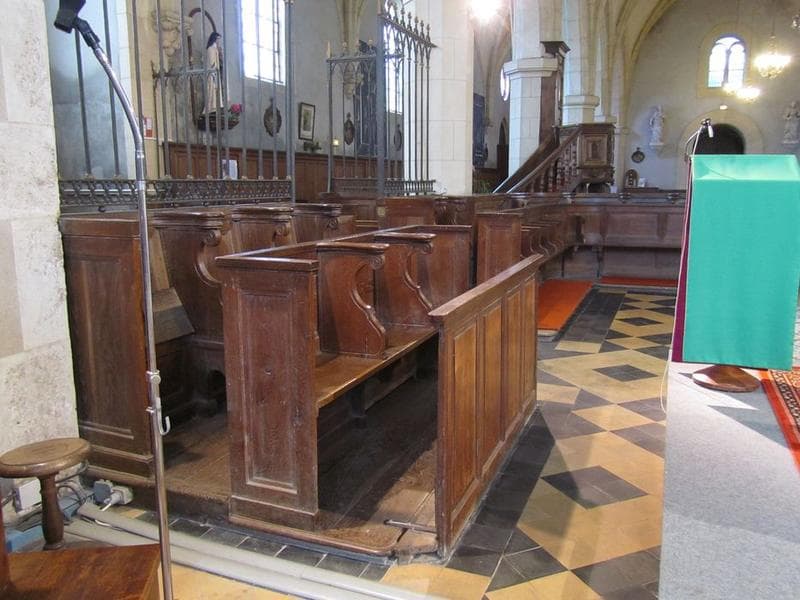 Stalles réparties en quatree groupes autour du choeur.