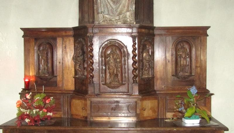 tabernacle et cinq statues (statuettes) : Saint Jean-Baptiste, Saint Pierre, Christ, Evêque, Saint Laurent