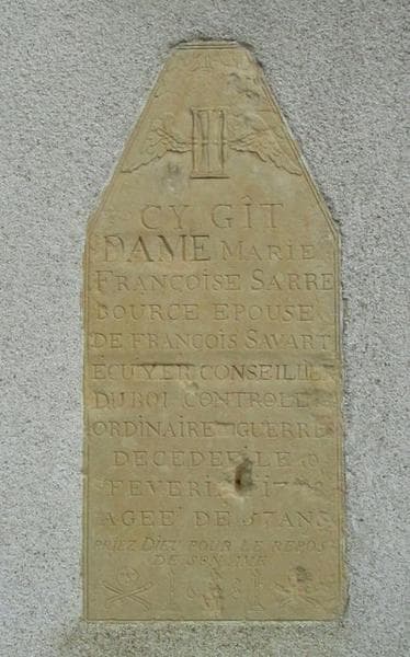 inscription funéraire de Marie Françoise Sarrebource