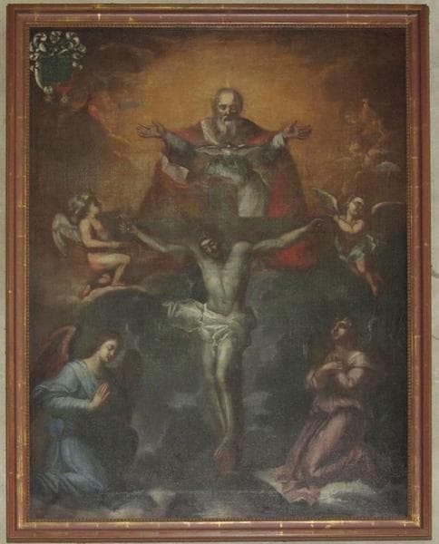 Dieu le Père ; colombe ; Christ en croix ; ange