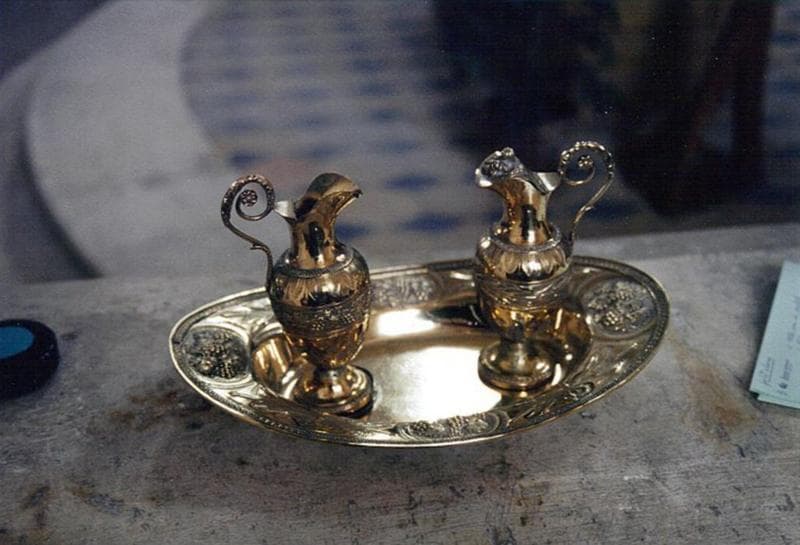 Burettes et plateau en vermeil.
