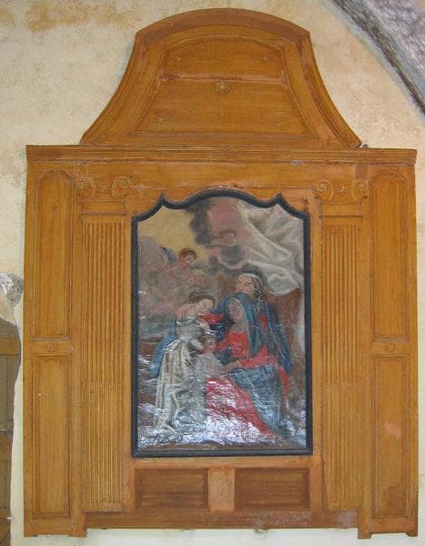 Ce tableau fait partie d'un retable latéral dont seule la boiserie a été conservée. Deux représentations du thème sont peintes superposées.