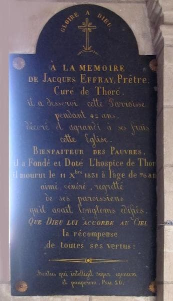 plaque commémorative de l'aménagement de l'église par Jacques Effray, curé