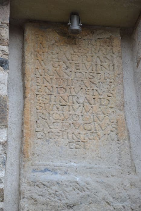 sculpture : inscription romaine constituant un périmètre de protection autour de l'aqueduc conduisant à Lyon les eaux du Gier