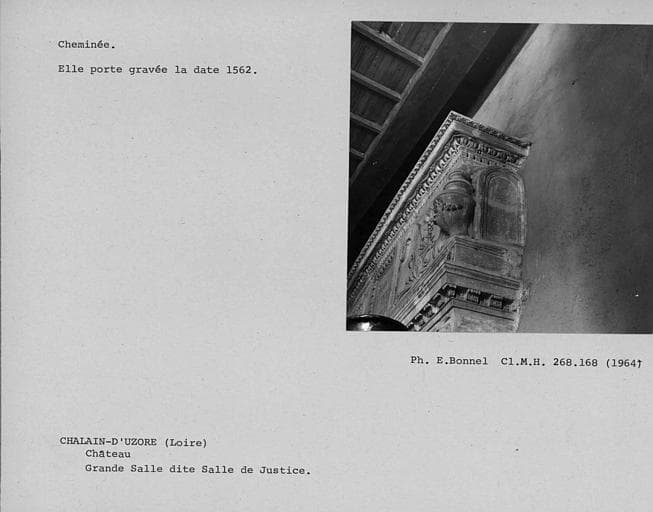 L'ensemble est constitué de la cheminée et la porte Renaissance de la grande salle au rez-de-chaussée, de la cheminée de la bibliothèque au rez-de-chaussée, et de la cheminée du petit salon provenant du château de Goutelas, également au rez-de-chaussée.