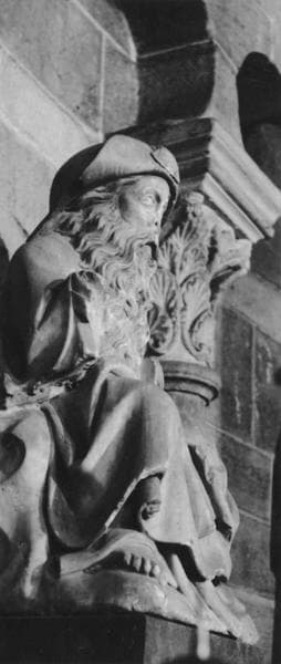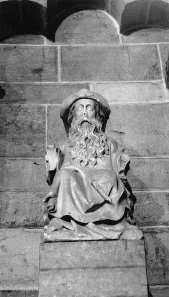 saint Jacques, assis, chapeau : ornement : coquille Saint-Jacques