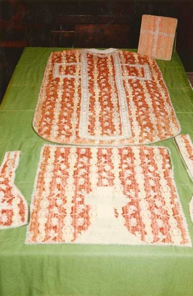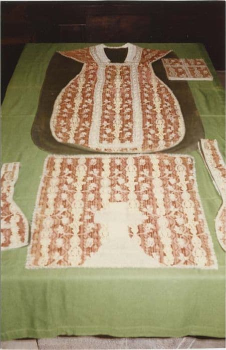 ensemble d'ornements liturgiques (chasuble, étole, manipule, bourse, voile du calice)