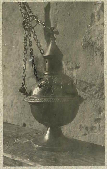 Coupe sur pied surmontée d'un couvercle semi-sphérique dont les perforations sont trilobées ou en croix pattée. Sur le couvercle un petit clocheton est couronné d'une croix servant d'anneau de préhension.