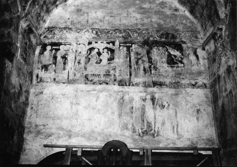 POP | Plateforme ouverte du patrimoinedécor peint (mur septentrional) : saint Donatien et saint Rogatien confessant leur foi, le Martyre de saint Laurent, scènes de la vie de sainte Foy