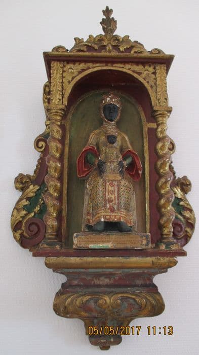 groupe sculpté : Vierge noire en majesté placée dans une niche sculptée