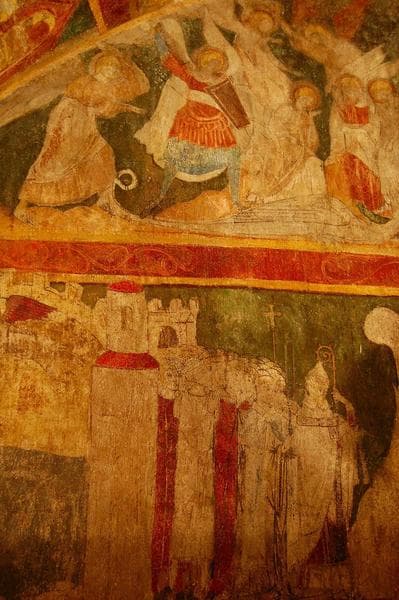 décor peint (chapelle Saint-Michel, voûte) : saint Michel terrassant le démon