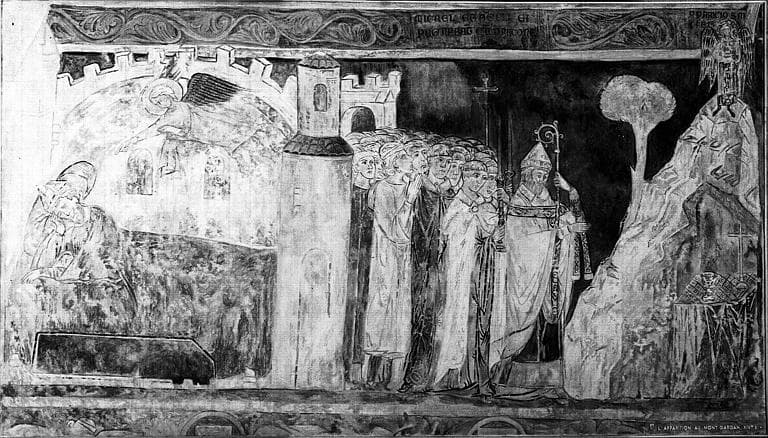 décor peint (chapelle Saint-Michel) : Apparition de saint Michel sur le Mont-Gargan, Apparition de saint Michel à l'évêque d'Avranches