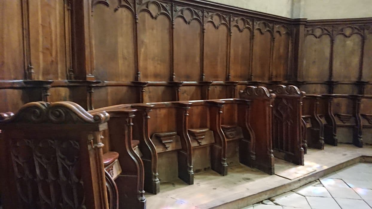 Stalles en bois de chêne (partie ancienne) et bois de noyer (parties 19e siècle).