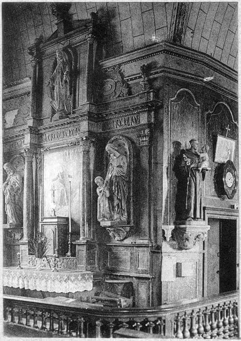 Ensemble regroupant le maître-autel, les autels-retables latéraux nord et sud, 2 statues, la chaire à prêcher et la clôture de sanctuaire. Les lambris mentionnés dans l'arrêté de classement ne sont à priori plus en place (cf. Photo).