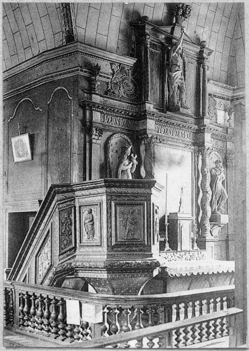 POP | Plateforme ouverte du patrimoineensemble des boiseries du sanctuaire : maître-autel, autels des chapelles nord et sud, 2 statues, chaire à prêcher, clôture de sanctuaire, lambris de couvrement
