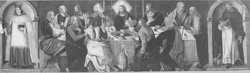 tableau : la Cène entre saint Yves et saint Dominique