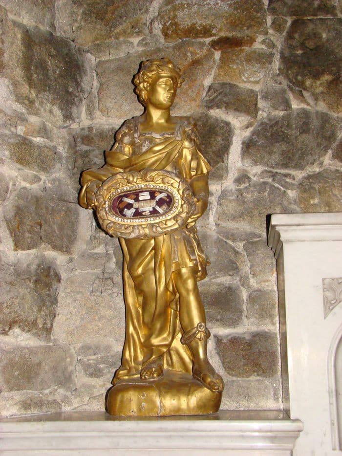 Chaque reliquaire est porté par une statue représentant un diacre et un soldat romain.