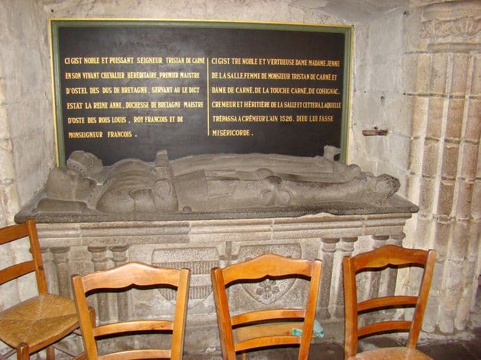 A effigies en relief et à inscription de Tristan de Carné, maître d'hôtel des ducs de Bretagne et de Jeanne de La Salles sa femme morte en 1526.