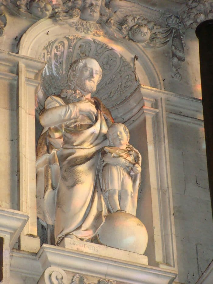 3 statues : saint Joseph et l'Enfant Jésus, saint Louis de Gonzague, saint Pierre