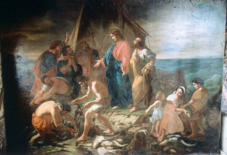 Huile sur toile représentant la pêche miraculeuse.