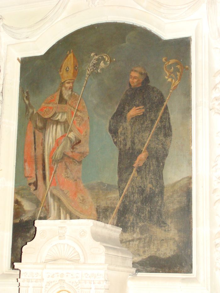 groupe sculpté et tableau : L'Education de la Vierge, Un évêque et un abbé