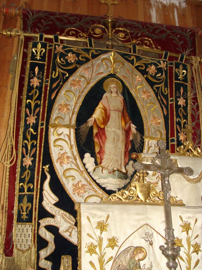 bannière de procession du Sacré-Coeur et de la Vierge