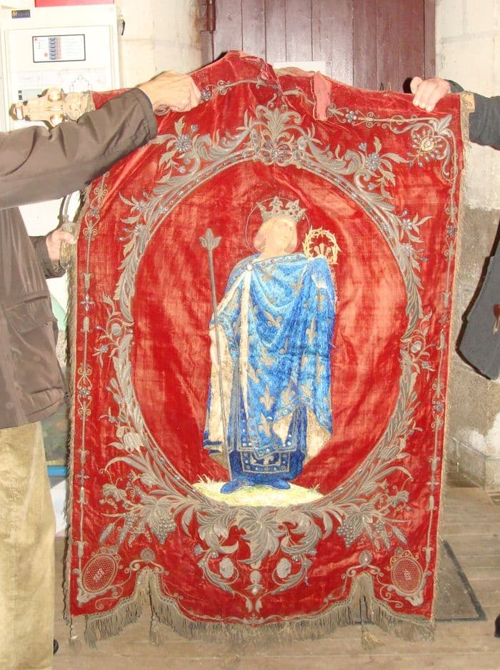 bannière de procession de la Vierge et de saint Louis