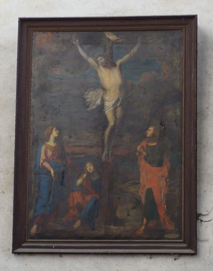 tableau et son cadre : Le Christ en croix entre la Vierge, saint Jean et Marie-Madeleine