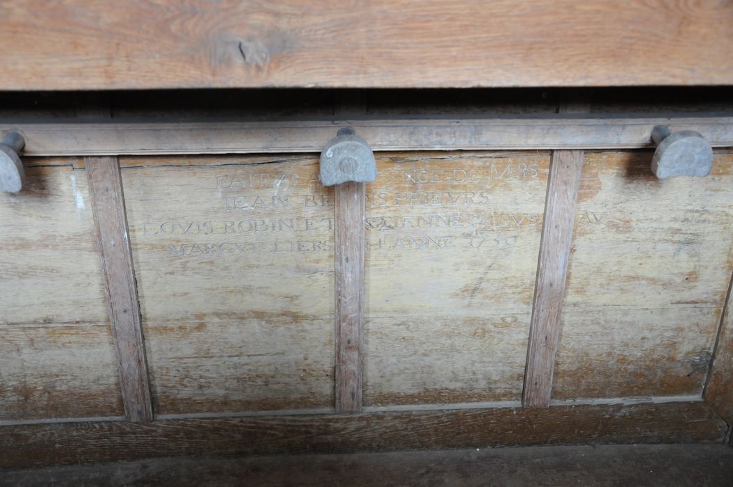 Porte l'inscription et la date suivantes : Fait à la diligence de MM. Jean Benois Prieurs, Louis Robin et Etienne Prousteau Marguilliers en l'année 1730.